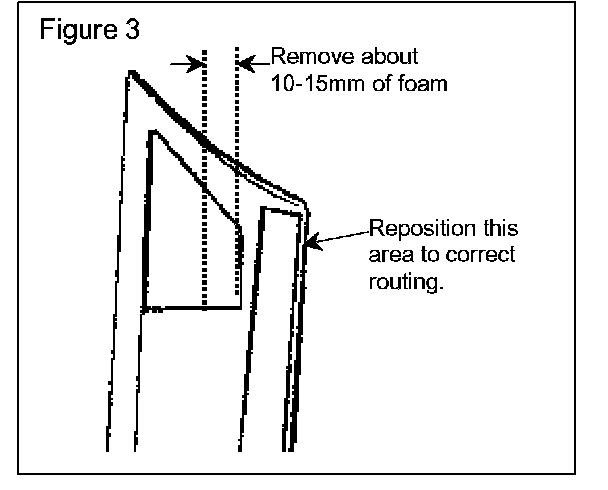4. If the foam filler block is deformed, carefully remove some material from the block to eliminate the foul condition between the filler block and the end of the windscreen finisher. (Figure 3)