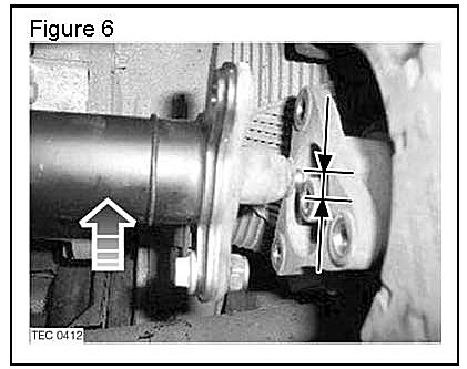 12. When the measurement is equal above and below the locating bush within 1 mm of the "target" position, tighten all bolts securing the front differential to 110 Nm (81 lbf.ft).