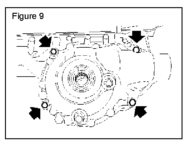 ^ Release the four differential attachment bolts sufficiently to secure the differential, but still allow slight rotation on its axis. (Figure 9)