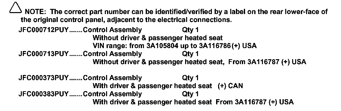 GTR Home > NAS > Service Information/ LM New Range Rover/2004 > Workshop Manuals > Service Procedures> Bookmark "Heating and Ventilation" > "Repairs" > "Controls - heater (ECU)" link