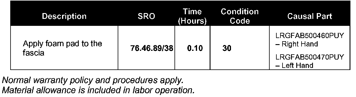 If a customer should complain of the above symptoms, insertion of a small foam pad under the 'A' post will eliminate the creaking noise.