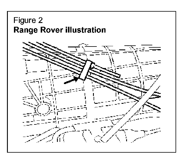 8. On Range Rover vehicles slide the white tube clip toward the rear of the vehicle until it stops against the bulge at the end of the repositioned drain tube. (Figure 2)