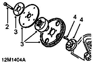 2. Remove 4 bolts securing drive plate assembly.