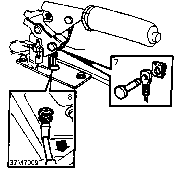77. Connect handbrake cable to lever. Secure with clevis pin and clip.