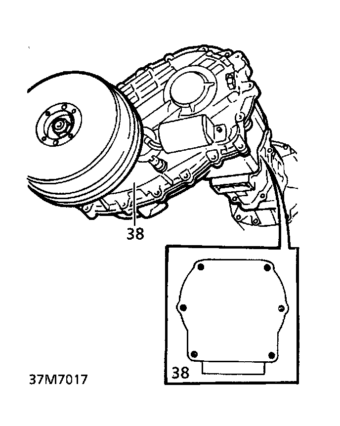 38. Remove 6 bolts securing transfer box to gearbox. Release from 2 ring dowels. Remove transfer box.