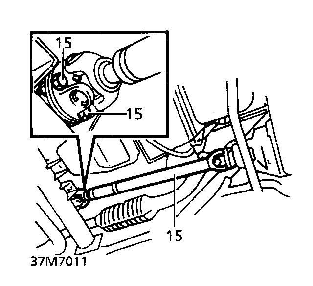 15. Remove 4 nuts and bolts from each flange. Disconnect propeller shafts. Tie aside.