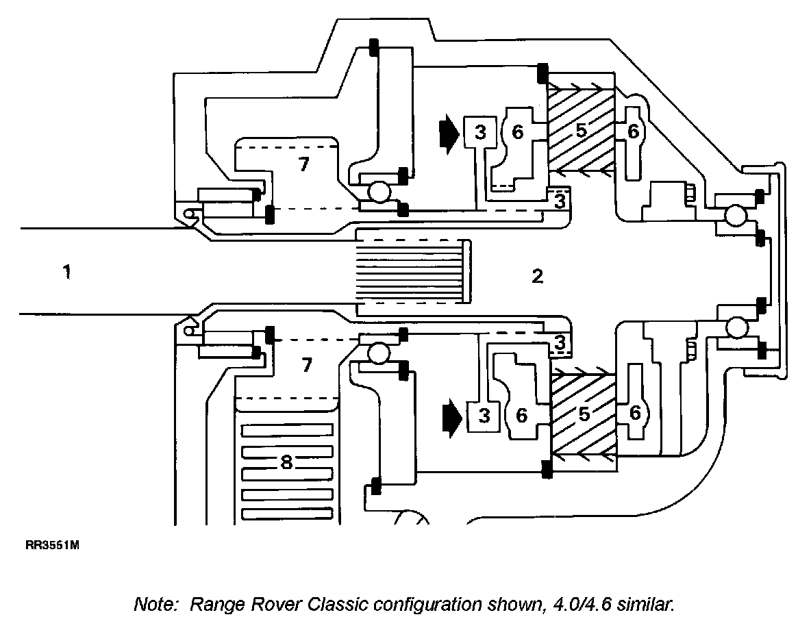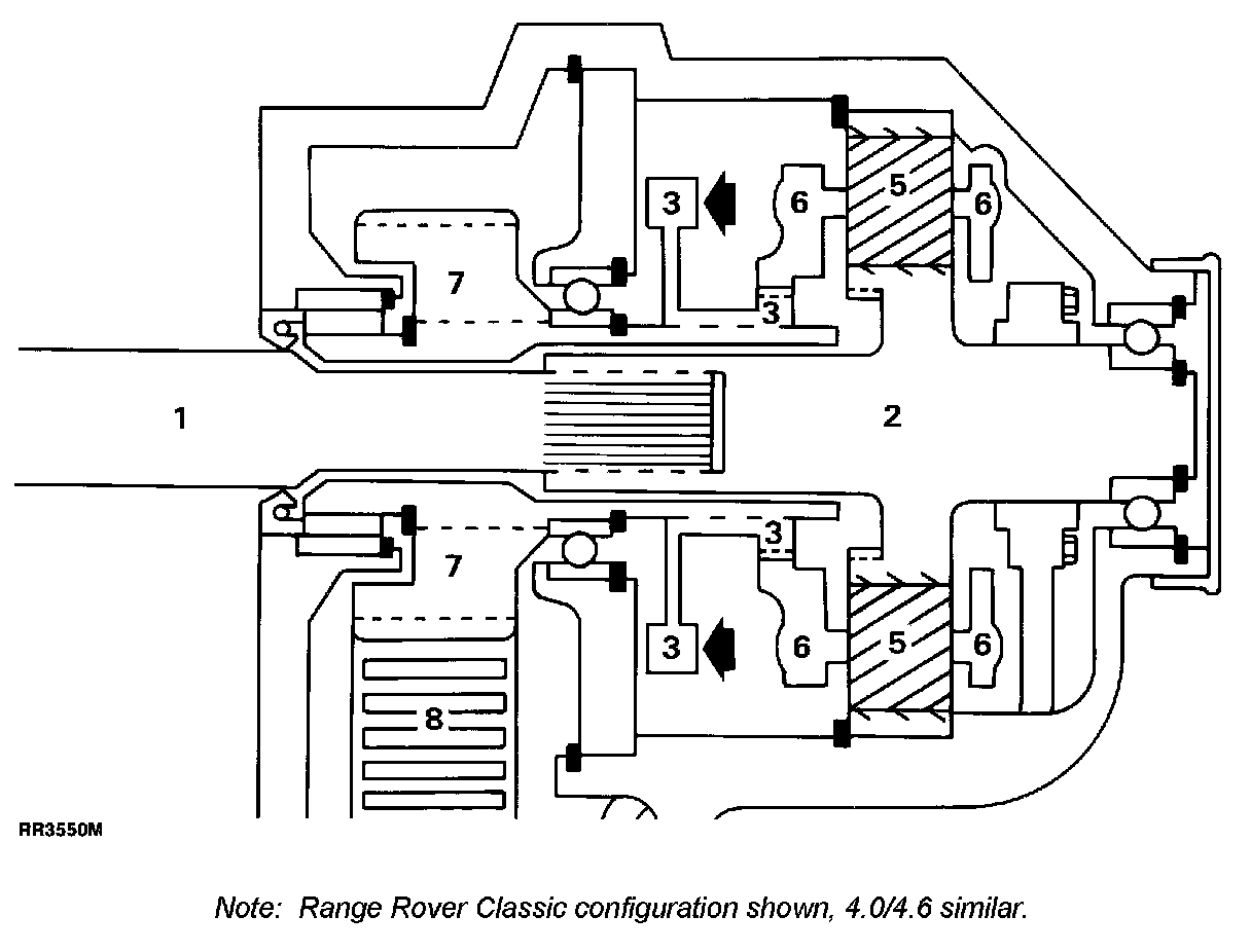 Broken lines in the following Illustration indicate gear or sliding splined connections.