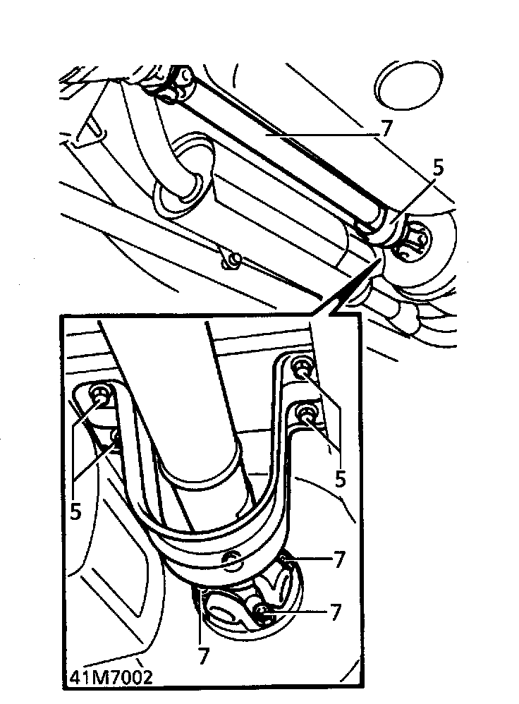 28. Fit propeller shaft guard. Secure with bolts.