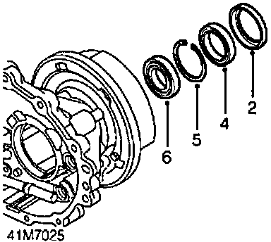 5. Remove circlip retaining rear output shaft bearing to rear casing.