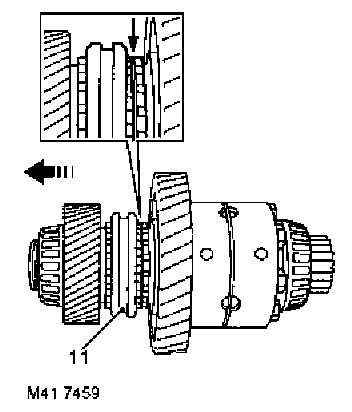 11. Using feeler gauges, determine clearance between low range gear and high/low hub: