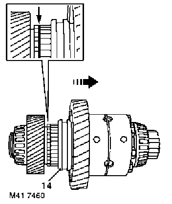 14. If clearance is not as specified, fit new high range gear and high/low hub and recheck.