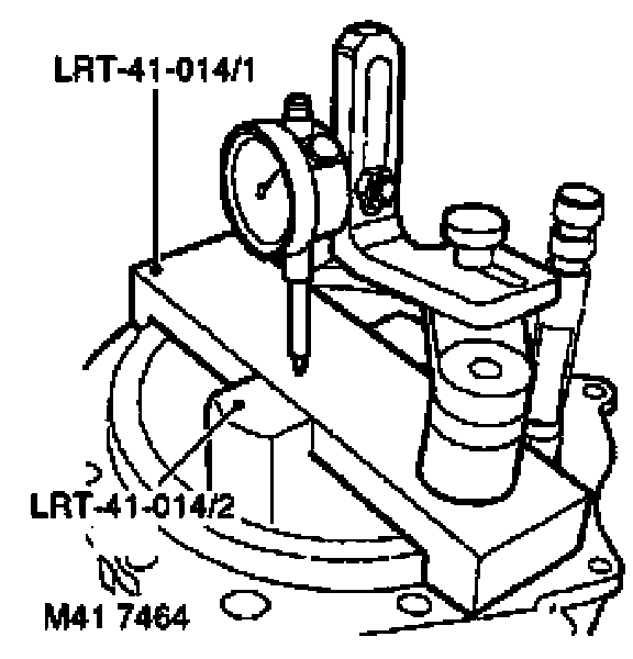 30. Position depth block tool LRT-41-014/2 and cross bar tool LRT-41-014/1 to front output housing.