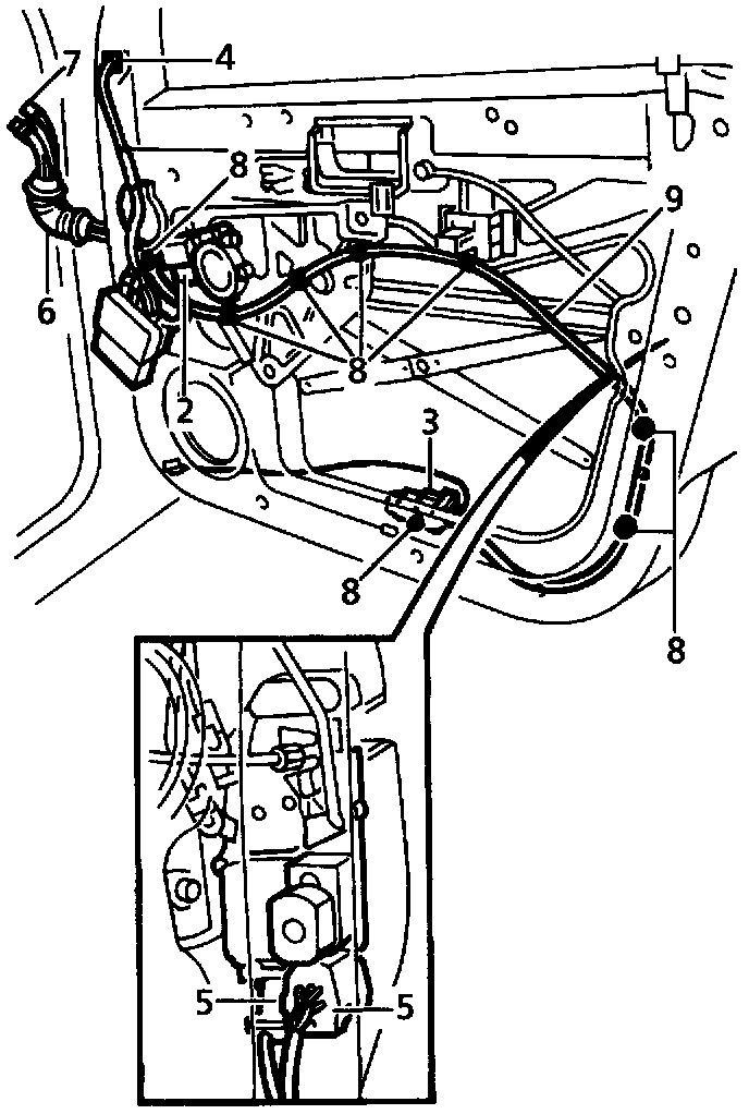 9 Remove harness from door.