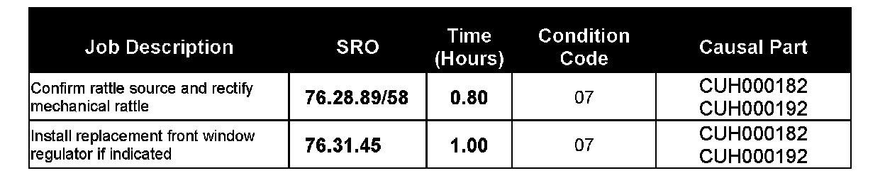 19. If rattles are still present, refer to the RAVE Workshop Manual section 76.31.45 and replace the front door regulator assembly.