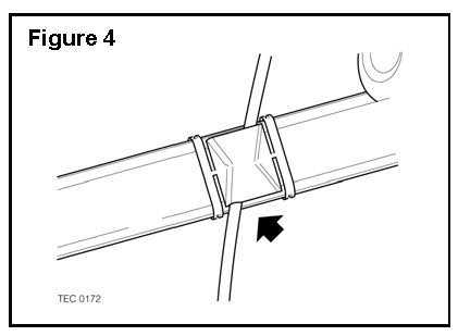 14. Check the integrity of the clip securing the regulator cable to the crash beam (Arrowed in Figure 4).