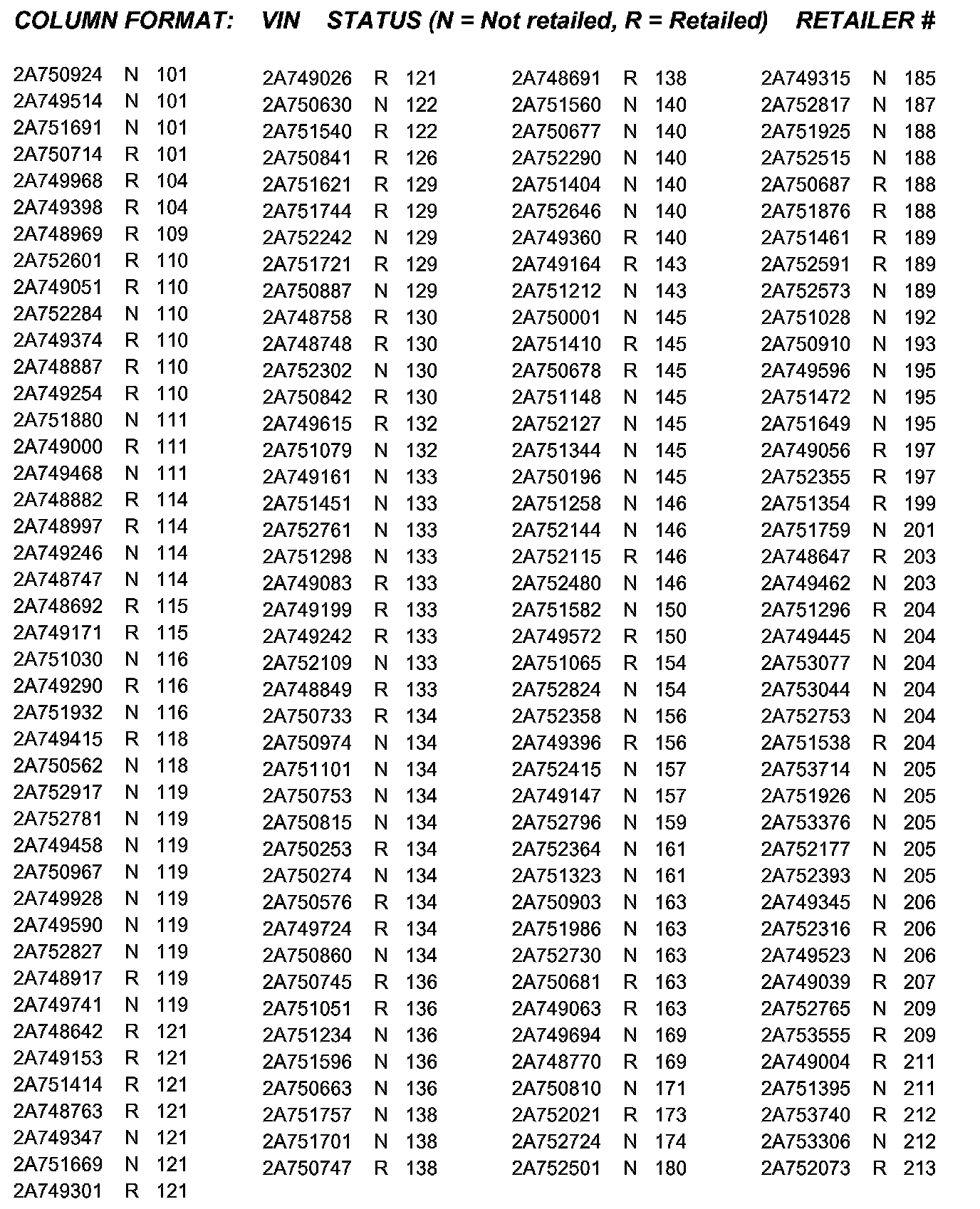 ^ Parts will be shipped with a VIN listing indicating the vehicles to be repaired.