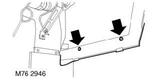 1. Remove 2 trim clips securing rear mud flap to bumper side section.