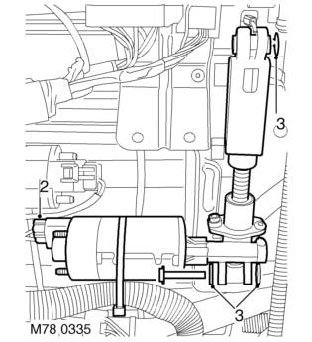 4. Using a suitable drift remove roll pins securing tilt motor and operating lever to seat frame.