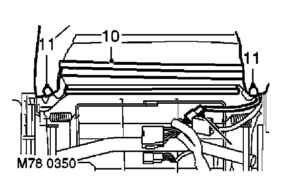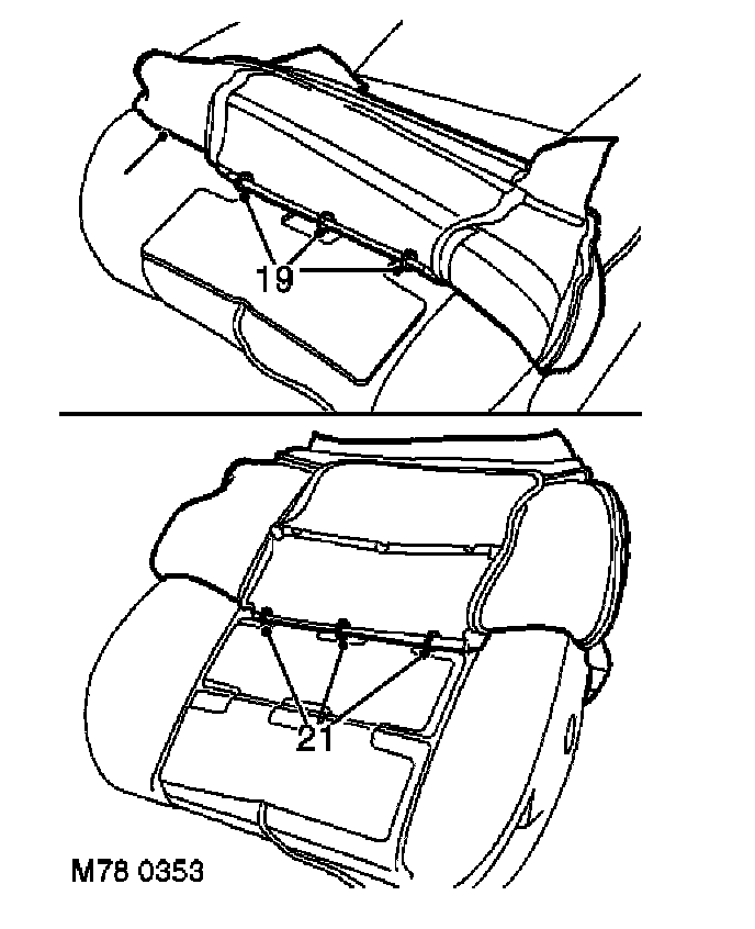 11. Remove 2 clips securing either end of cover to squab frame.