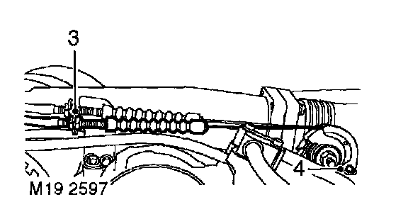 3. Loosen cable locknuts, release outer cable from abutment bracket and retaining clip.