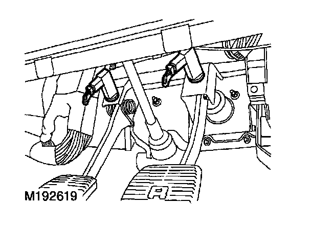 The clutch pedal switch is a single pole normally closed switch. It is part of the 12 Volt brake pedal switch circuit to the cruise control ECU. When the clutch pedal is pressed, the cruise control ECU deactivates the cruise control system and releases system vacuum. The last set speed is retained in the cruise control ECU.