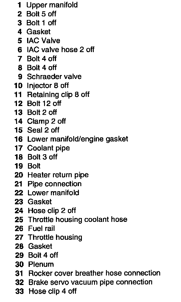 Inlet Manifold Component List:
