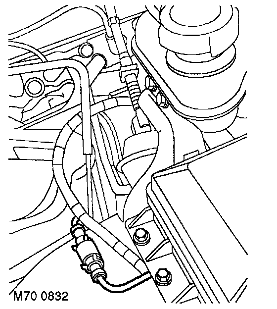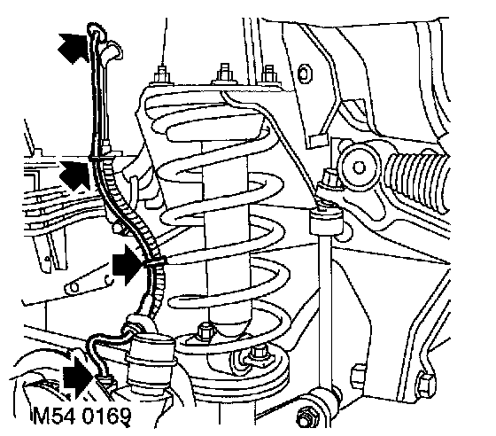 1. Release ABS sensor harness grommet from inner wing valance and disconnect multiplug.