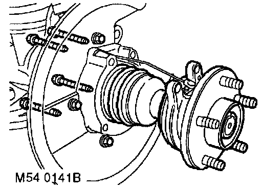 9. Remove 4 bolts securing wheel hub to steering knuckle.