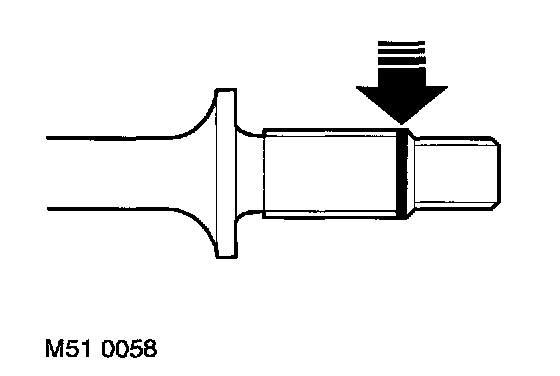 6. Apply a 3 mm (0.125 inch) wide bead of Loctite 640 around drive shaft circumference, as illustrated.