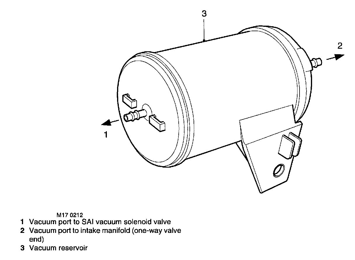 A small bore nylon hose is used to connect the one-way valve end of the vacuum reservoir to a port on the RH side of the inlet manifold. A further hose connects between the other port on the vacuum reservoir and a port on the front of the SAI vacuum solenoid valve.