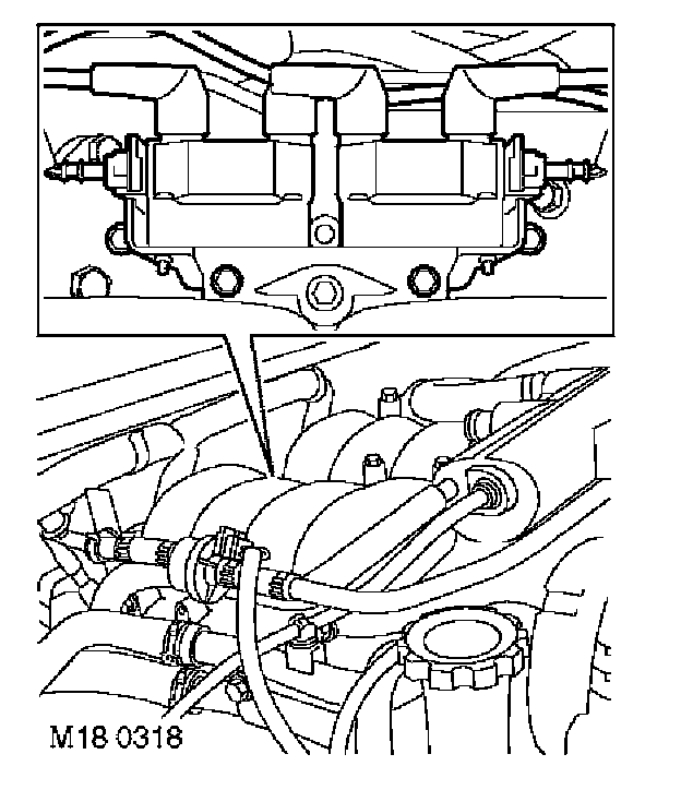 Two double ended ignition coils are located at the rear of the engine, below the inlet plenum camber mounted on a bracket. The ignition system operates on the wasted spark principle. When the ECM triggers an ignition coil to spark, current from the coil travels to one spark plug jumping the gap at the spark plug electrodes igniting the mixture in the cylinder. Current continues to travel along the earth path (via the cylinder head) to the spark plug negative electrode at the cylinder that is on the exhaust stroke. The current jumps across the spark plug electrodes and back to the coil completing the circuit. Since it has sparked simultaneously in a cylinder that is on the exhaust stroke it has not done any work, therefore it is wasted.