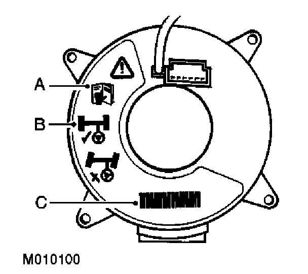 ^ Never wrap your arms around an airbag module. If an airbag module has to be carried, hold it by the cover, with the cover uppermost and the base away from your body.