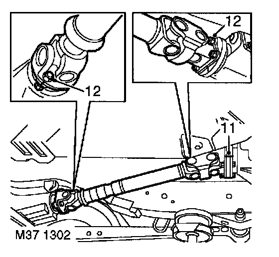 11. Mark front propeller shaft to transfer gearbox and differential flanges.