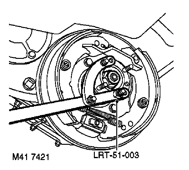5. Position tool LRT-51-003 and tighten new drive flange nut to 148 Nm (109 lbf.ft).