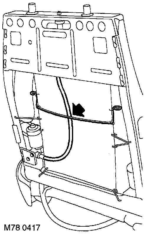 NOTE: Cable run is under squab cover shock cord retention wire.