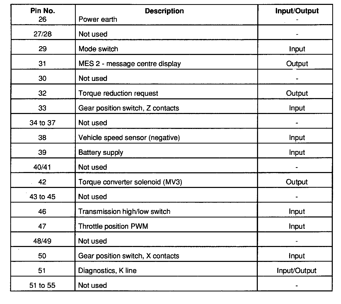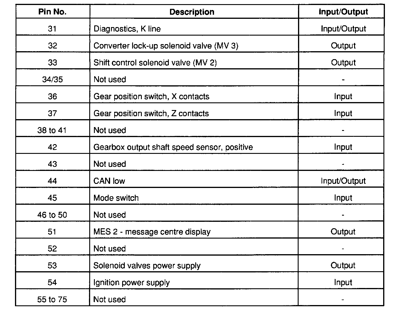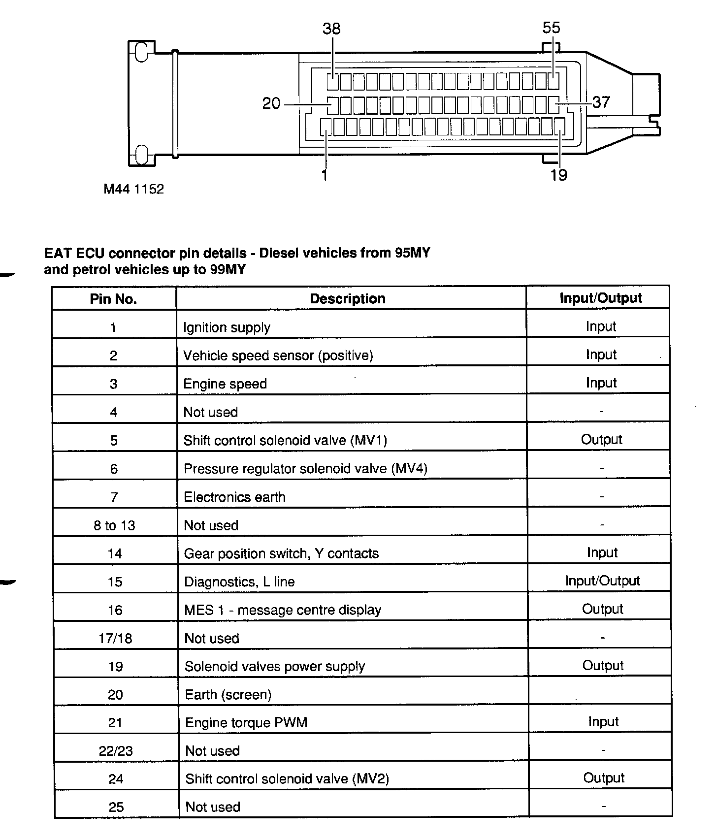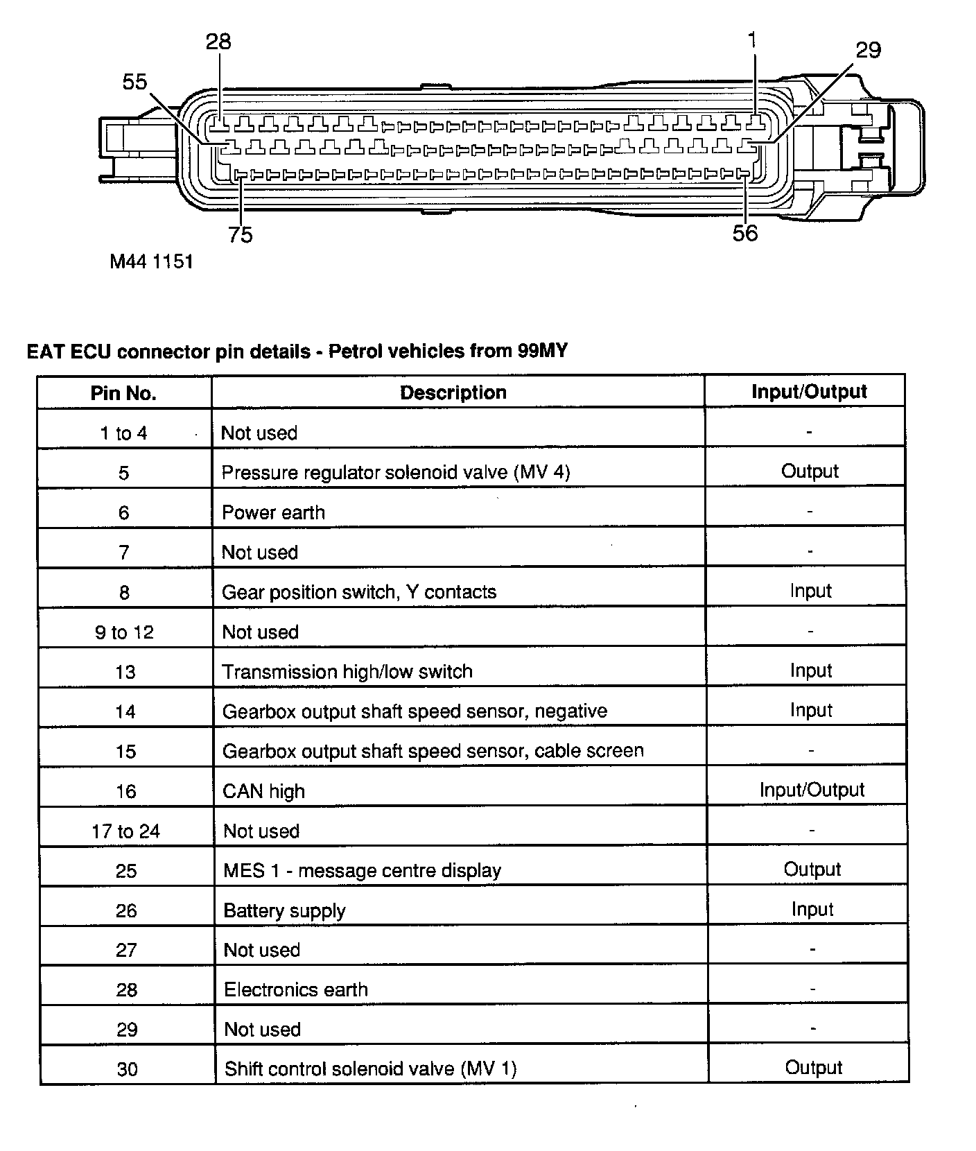 EAT ECU connector - Diesel vehicles from 95MY and petrol vehicles up to 99MY