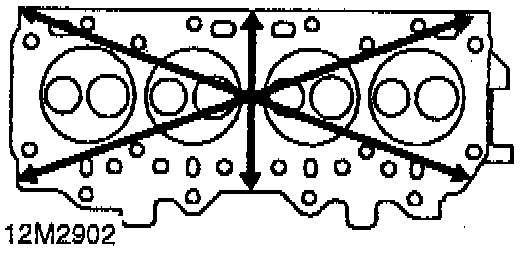 Cylinder Head Assembly1. Check gasket face of each cylinder head for warping, across center and from corner to corner.