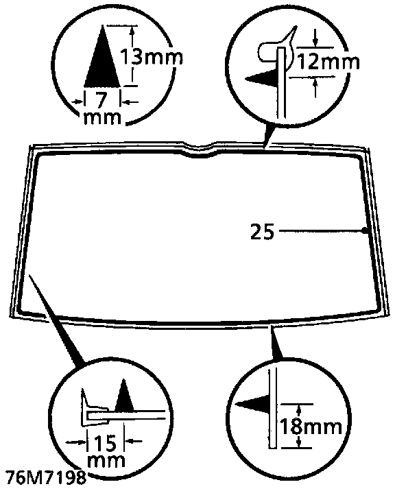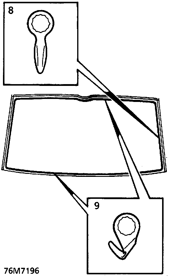 NOTE: Side finishers are secured to backlight with P.U. sealer. New backlight glasses are supplied with side finishers fitted. Side finishers are available separately if original glass is to be refitted.