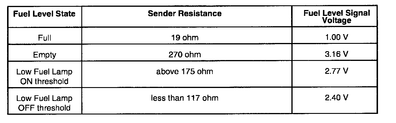 This input is required by the ECM as part of the misfire detection strategy, in order to record a "low fuel" situation was present when misfire was detected and logged as a fault. The signal is received as an analogue signal from the fuel tank sender unit.