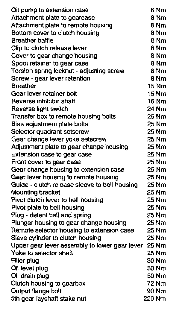R380 5-spd M/T Tightening Torque: