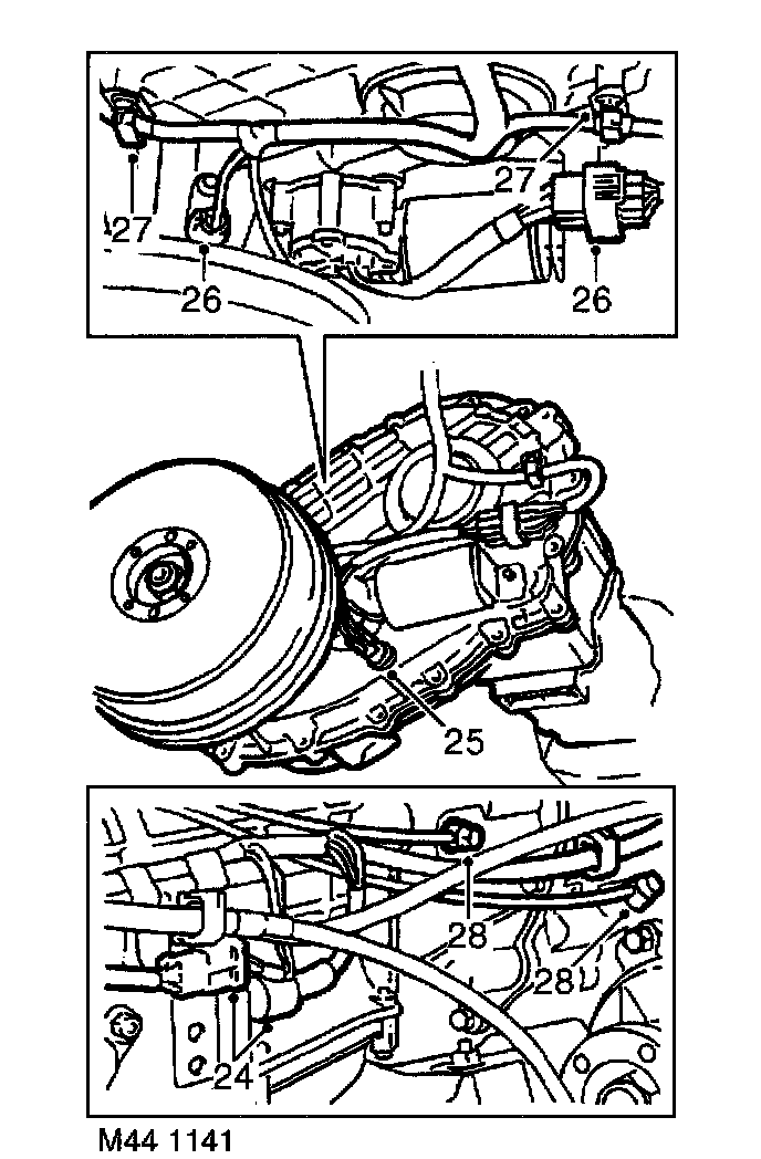 25. Disconnect multiplugs from gear selection position switch and gearbox speed sensor.