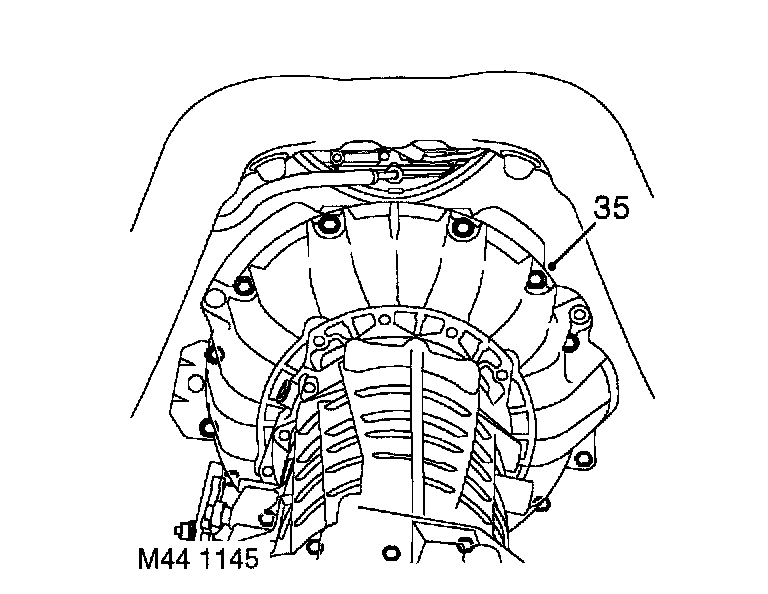 43. Fit crash bracket to gearbox flange and fit and tighten engine to gearbox bolts to 46 Nm (34 ft. lbs.).