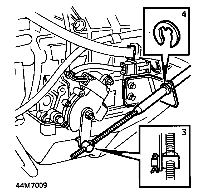 4. Remove 'C' clip securing cable to transmission abutment bracket. Remove cable.