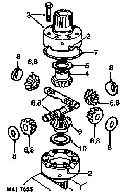 8. Remove planet gears and cross shafts, remove and discard dished thrust washers.