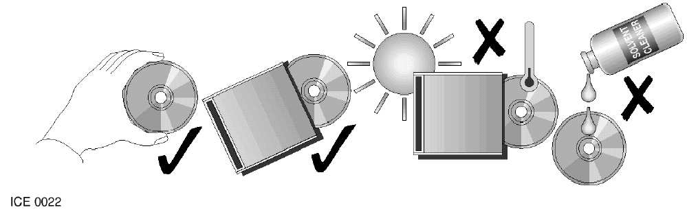 Dirt dust condensation and heat can damage discs. Always observe the following precautions: