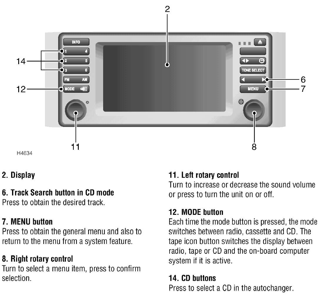 Press the 'MODE' button (12) as often as necessary, until 'CD' is displayed. Press the right rotary control (8) to select. The first CD from the magazine is played. To stop the CD playing press the MODE' button (12).
