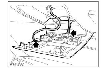 1. Open spectacle holder, remove 2 screws securing console and release console from headlining.