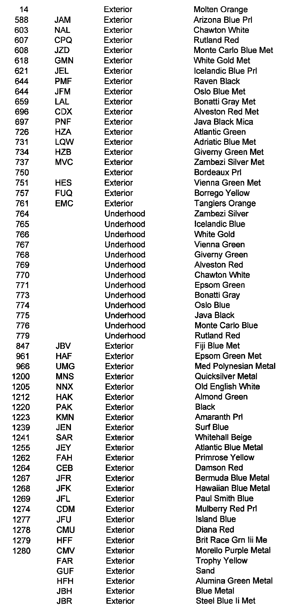 Color ID Number(S) & Descriptions