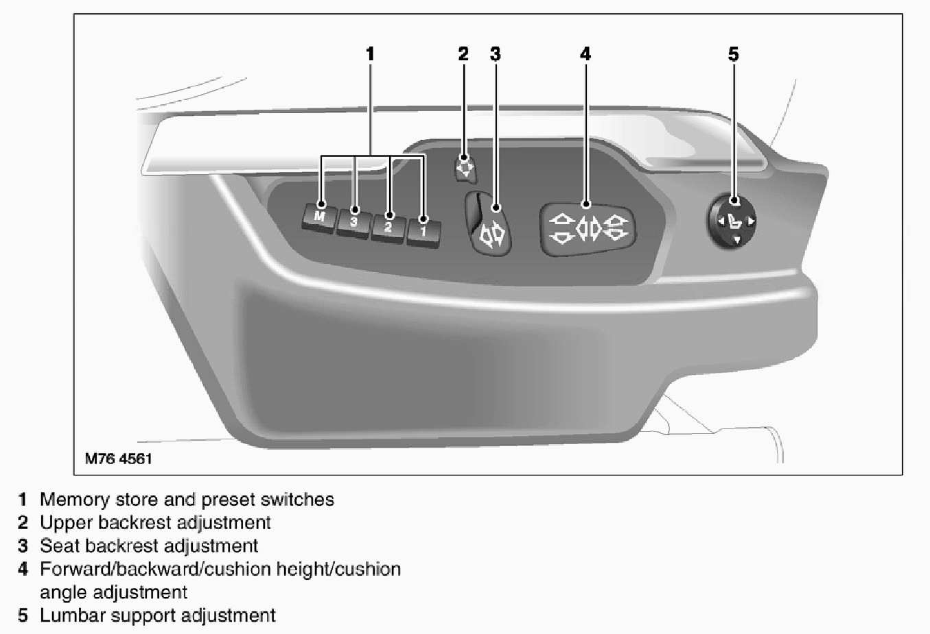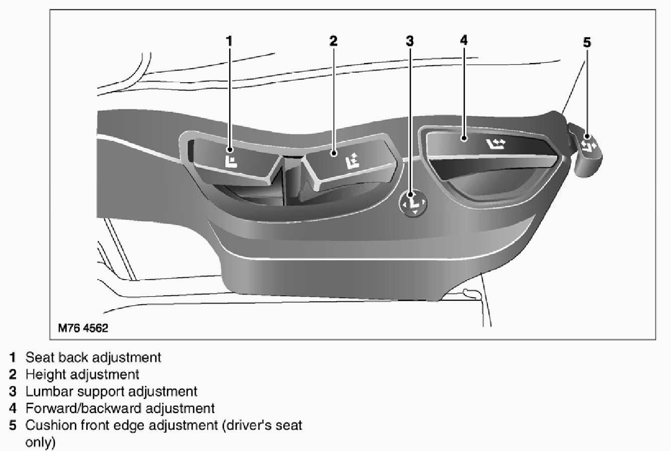 The electric seats are adjusted in the following axes by switches fitted in the seat side trim panel:
