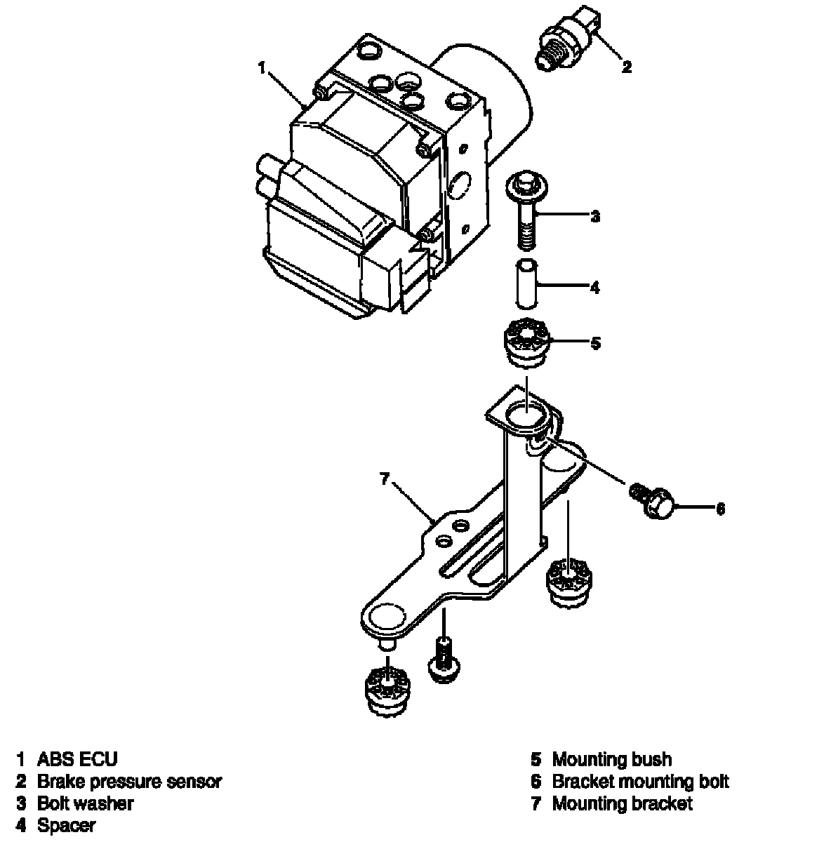 A brake pressure sensor is installed in the hydraulic unit to determine the degree of pressure build up in the braking system. It is installed in the front axle brake circuit.